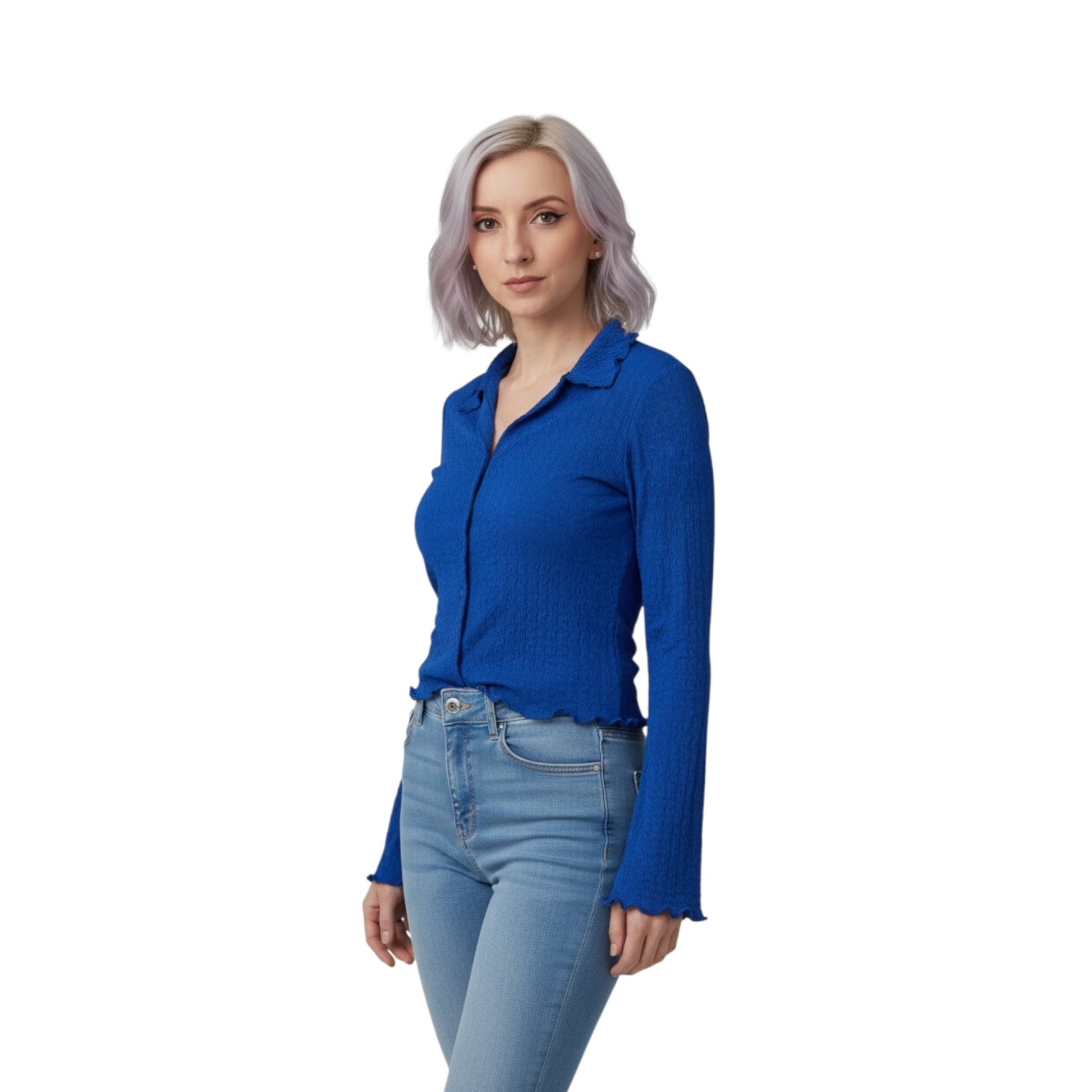 Moderne Damen‑Hemdbluse von MONKI in klassischem Blau.